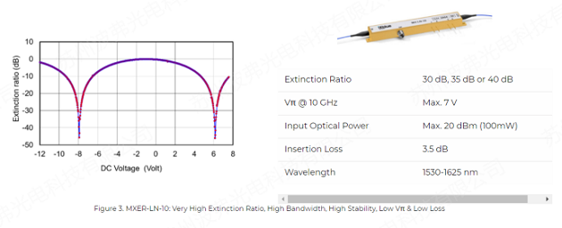 泵浦脉冲的消光比直接影响整个BOTDA测量系统的信噪比。因此,高消光比EOM直接影响BOTDA系统的最大测量范围和测量速度。MXER-LN系列强度调制器是高性能调制器,具有优越的消光比。该产品的设计依赖于iXblue的“Magic Junction”(专利号n° US2008193077)。MXER-LN系列强度调制器是BOTDA应用中需要高消光和高带宽组合的关键器件。