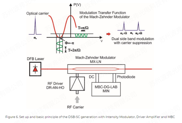 高度通用的MX-LN-10有一个X-cut设计,广泛的工作条件,以及零啁啾性能和无与伦比的稳定性。iXblue专有的波导设计提供了低插入损耗和高消光比。MX-LN-10由于具有高带宽、稳定性好和低插入损耗,非常适合用于BOTDA系统的DSB-SC。DR-AN-10-HO是一种宽带射频放大器模块,设计用于频率高达11GHz的模拟应用。DR-AN-10-HO具有低噪声系数和线性传递函数的特点,其1dB压缩点大于23dBm。它在整个带宽上表现出平坦的群延迟和增益曲线,波动很小,该放大器模块非常适合匹配MX-LN-10做DSB-SC应用。 利用MBC-DG-LAB和MBC-DG-board可以锁定马赫-曾德尔调制器的工作点,保证了对偏置漂移的长期稳定性。