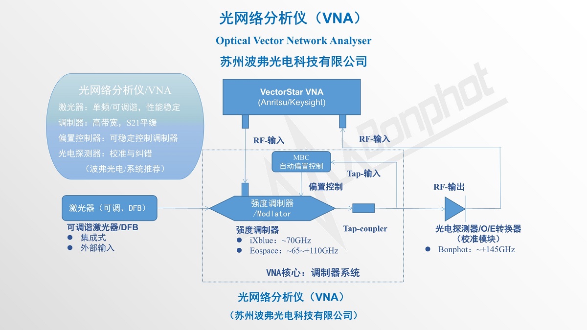 高性能光网络分析仪(VNA)是高速器件参数测试、EO带宽/OE带宽测试、光纤通道&CATV传输系统、射频光纤传输、研究研发等应用常用仪器。苏州jinnianhui今年会科技有限公司提供基于高带宽电光调制器(iXblue/Eospace),高达70GHz网络分析仪系统元器件,这些器件、性能稳定、高性价比。
